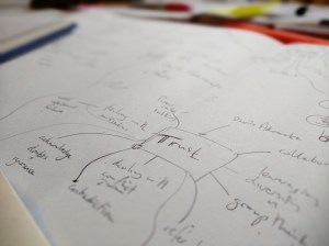 Notebook 1 is for mind maps, spider-graphs, doodles and clumps of words that should go together. This helps you plan out a piece of work, or just get ideas down in a rough sort of pattern. Notebook 1 is how your brain works: a mixed bunch of ideas, loosely connected.